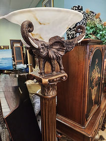 This is a stunning 3 elephant head torchiere bronze floor lamp. it has a fluted ionic column for the base. Overall in good condition.