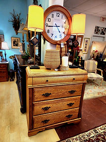 Dixie tall mahogany 5 drawer chest. Overall it is in good condition. Bottom drawer top left corner is missing some veneer and top does have some minor beauty marks. Drawers all work good.